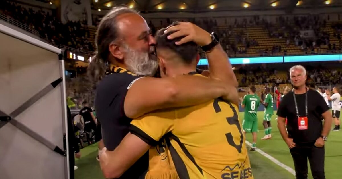 Ο ιδιοκτήτης της ΠΑΕ ΑΕΚ περίμενε τους παίκτες στη φυσούνα της OPAP Arena και αγκάλιασε έναν έναν, σχεδόν όλους τους ποδοσφαιριστές της ομάδας του, μετά τη λήξη του αγώνα με την κυπριακή ομάδα.