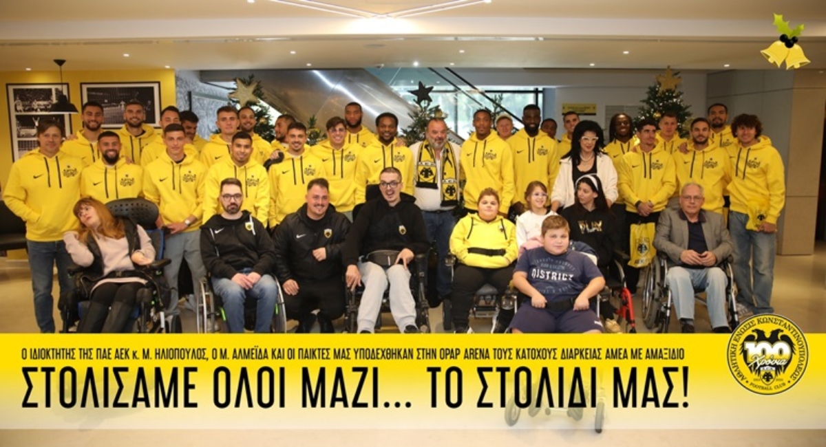 Η OPAP Arena φόρεσε τα γιορτινά της! Και το «ντύσιμο» της στα χριστουγεννιάτικα έγινε με τον καλύτερο τρόπο, αφού ο διοικητικός ηγέτης της ομάδας μας, κ. Μάριος Ηλιόπουλος, ο προπονητής Ματίας Αλμέιδα και οι ποδοσφαιριστές μας υποδέχθηκαν στο γήπεδο τους κατόχους εισιτηρίων διαρκείας ΑΜΕΑ με αμαξίδιο και όλοι μαζί συμμετείχαν συμβολικά στον στολισμό του.