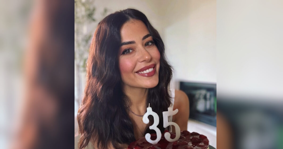 Η Αφροδίτη Λατινοπούλου πόζαρε με την τούρτα και τα κεράκια για τα 35α γενέθλιά της με ένα μεγάλο χαμόγελο.