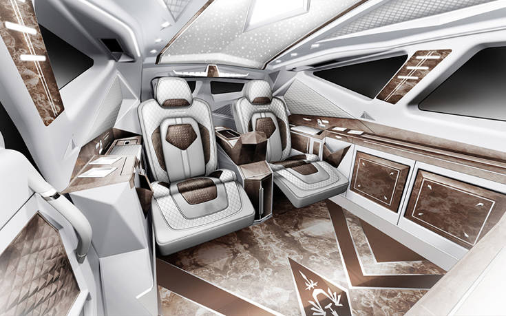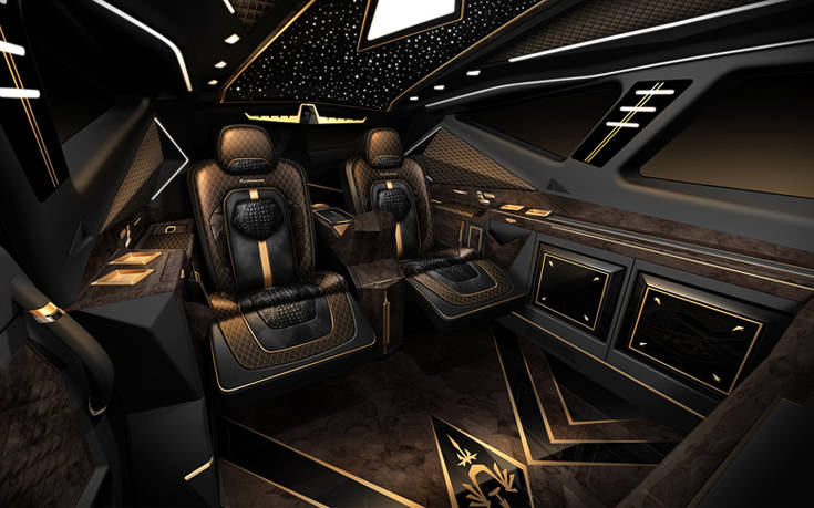 Αναδιπλούμενη δορυφορική τηλεόραση, κονσόλα gaming, ψυγείο, ατμοσφαιρικός φωτισμός, αποσπώμενα τραπέζια, οθόνες αφής, χειριστήρια, ακόμα και μηχανή του καφέ έχει ο ζάπλουτος ιδιοκτήτης στα ακροδάχτυλά του.