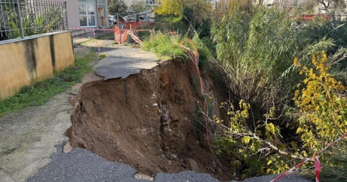 Το υπόλοιπο τμήμα του δρόμου που δεν έχει γκρεμιστεί, είναι σαθρό και φαίνεται πως δεν αντέχει ούτε το βάρος κάποιου περαστικού.