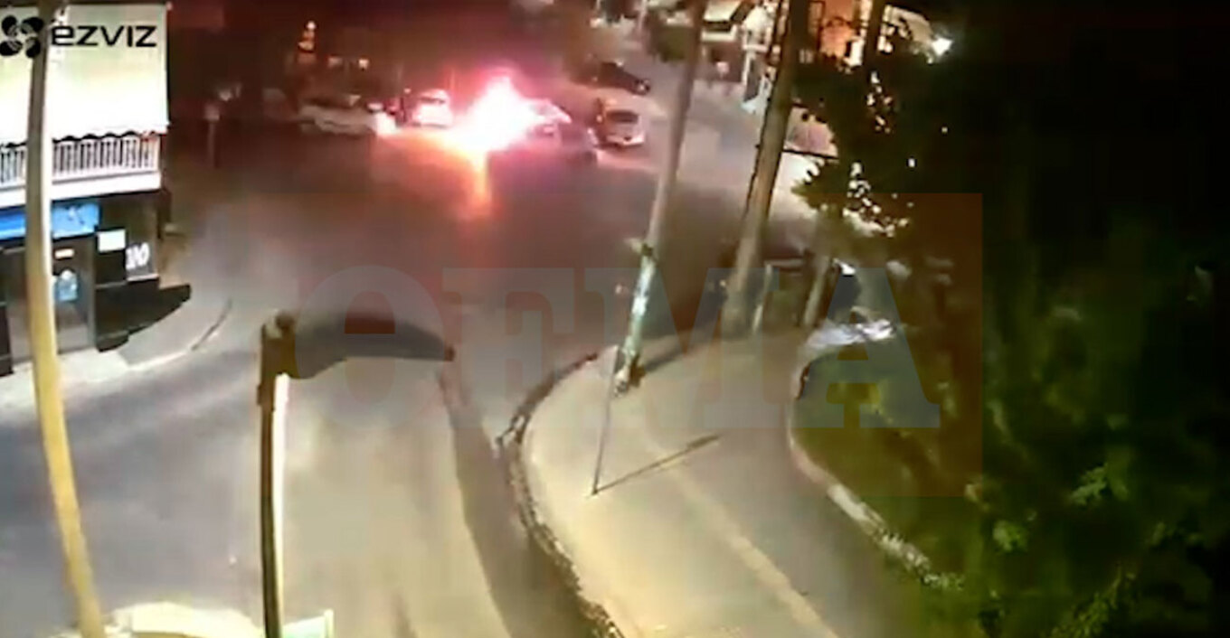 Λίγα δευτερόλεπτα αργότερα βάζει φωτιά και αμέσως το όχημα τυλίγεται στις φλόγες. Η φωτιά εξαπλώνεται γρήγορα, ενώ ο δράστης απομακρύνεται ψύχραιμος, χωρίς να προσπαθήσει καν να κρύψει τις κινήσεις του.