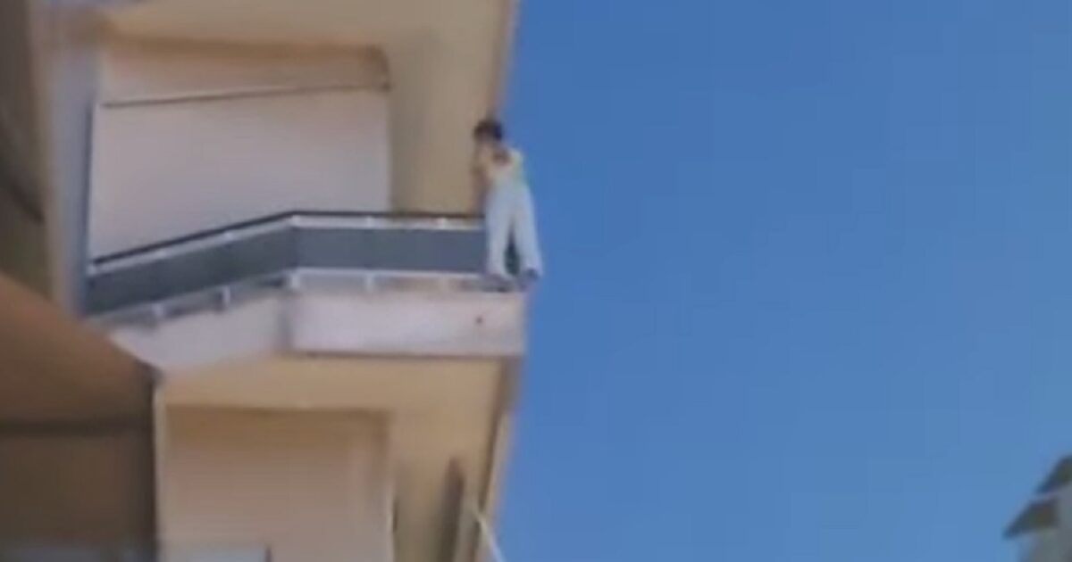 Όπως αναφέρει το agriniopress η γυναίκα για μερικά λεπτά βρίσκονταν στο εξωτερικό μέρος του μπαλκονιού με το θέαμα να προκαλεί σοκ σε γείτονες και περαστικούς