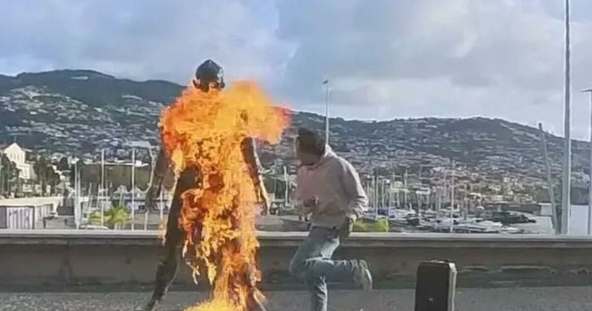 Στο video που ανέβηκε από το λογαριασμό του δράστη φαίνεται ο άνδρας να ρίχνει εύφλεκτο υλικό πάνω στο άγαλμα του Ρονάλντο, το οποίο είναι έξω από το μουσείο CR7 στο Φουνσάλ της Μαδέρας, και μετά να βάζει φωτιά με τον αναπτήρα του.