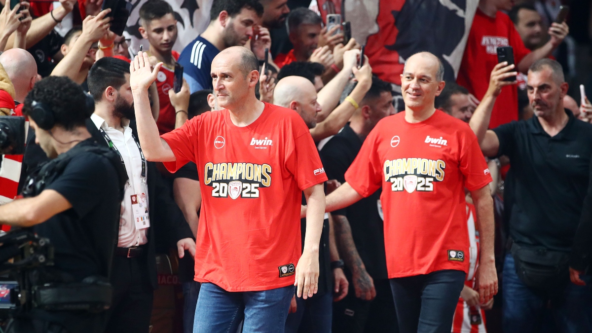 «Μας κάνατε περήφανους. Πήραμε το πiο μάγκικο πρωτάθλημα της ιστορίας μας στα 100 χρόνια. Δεν τα καταφέραμε στον ημιτελικό της Ευρωλιγκας, χάσαμε το πρώτο ματς. Όλοι μαζί δείξατε τι Ολυμπιακός. Όλοι σας, όσοι παίζανε και δεν παίζανε συγκεντρωθήκατε και κάνατε τους καλύτερους τελικούς. Συγχαρητήρια και πάλι» ανέφερε ο Παναγιώτης Αγγελόπουλος.