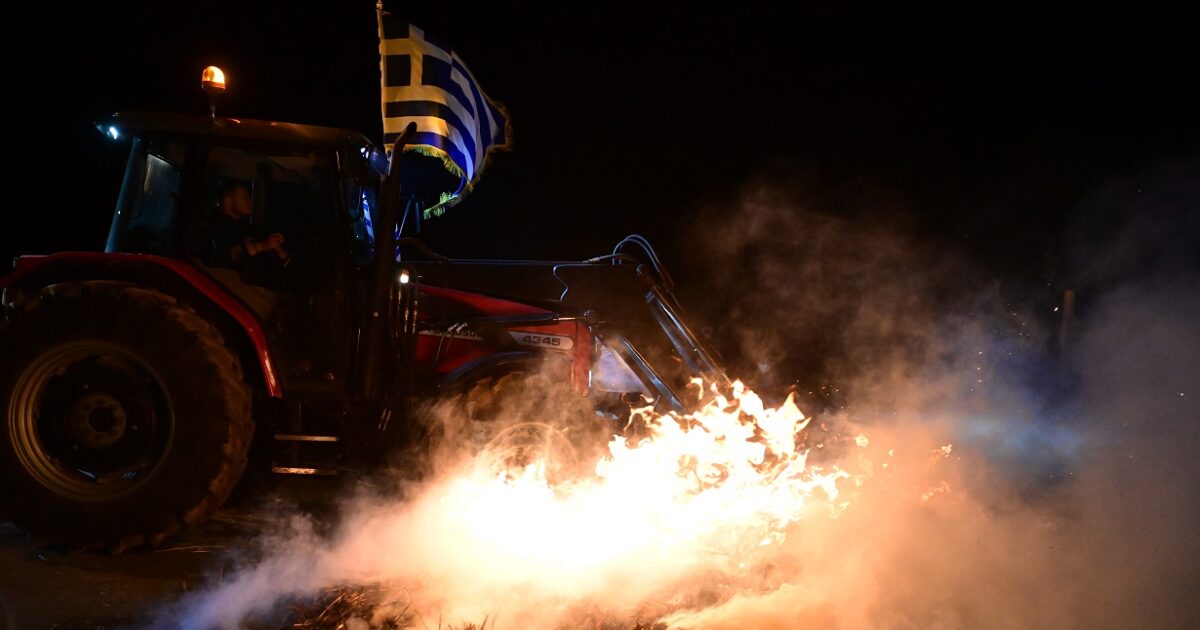 Οι συγκεντρωμένοι έβαλαν φωτιές σε μπάλες άχυρου και είχαν «θερμούς» διαλόγους με την ΕΛ.ΑΣ.