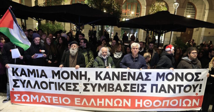 Μία διαφορετική «παράσταση» στήθηκε το βράδυ του Σαββάτου (27.12.2025) στη συμβολή των οδών Βουκουρεστίου και Πανεπιστημίου. Οι ηθοποιοί, αντί για το σανίδι, βγήκαν στους δρόμους, προχωρώντας σε απεργία.