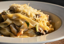 Αν θέλεις πιο πλούσιο αποτέλεσμα, πρόσθεσε την κρέμα γάλακτος, αλάτι, πιπέρι και λίγο μοσχοκάρυδο. Ανακάτεψε και ζέστανε για ακόμη 1–2 λεπτά πριν σερβίρεις.