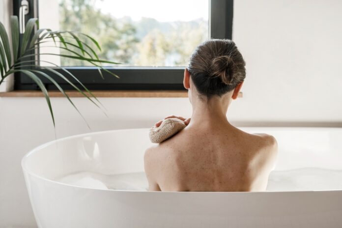Ξεκινήστε με χλιαρό –όχι καυτό– νερό για να μαλακώσετε την επιδερμίδα και να ανοίξουν οι πόροι ώστε να είναι ακόμα πιο αποτελεσματική η απολέπιση.
