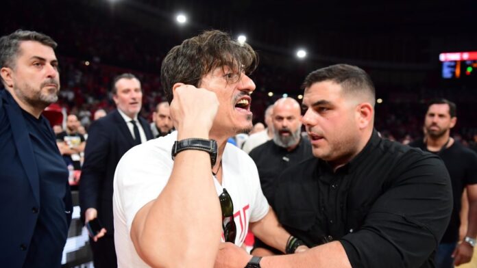 Οι διαιτητές ζήτησαν την αποβολή του και ύστερα από συζητήσεις λίγων λεπτών, ο διοικητικός ηγέτης του άφιξη του Παναθηναϊκού αποχώρησε.