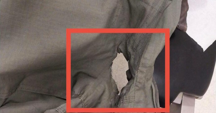Άνοιξε ολόκληρη τρύπα στην στολή ενώ φορούσε θώρακα και κάηκε η μπλούζα που φορούσε από κάτω!