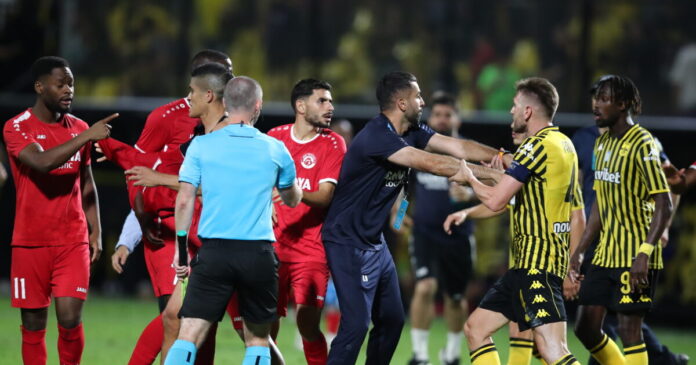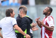 Αρχικά οι παίκτες των δύο ομάδων είχαν μία μικρή συμπλοκή μέσα στον αγωνιστικό χώρο και στο… χαμό δέχθηκε δεύτερη κίτρινη κάρτα και αποβλήθηκε ο αρχηγός των “κίτρινων”, ο Φαμπιάνο.