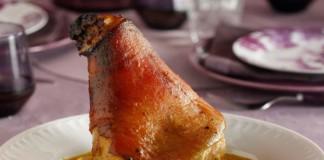 Κότσι με μαύρη μπίρα, πορτοκάλι και μουστάρδα