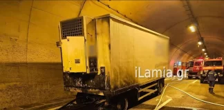 Εθνική Οδός Αθηνών-Λαμίας: Φωτιά σε φορτηγό μέσα σε σήραγγα