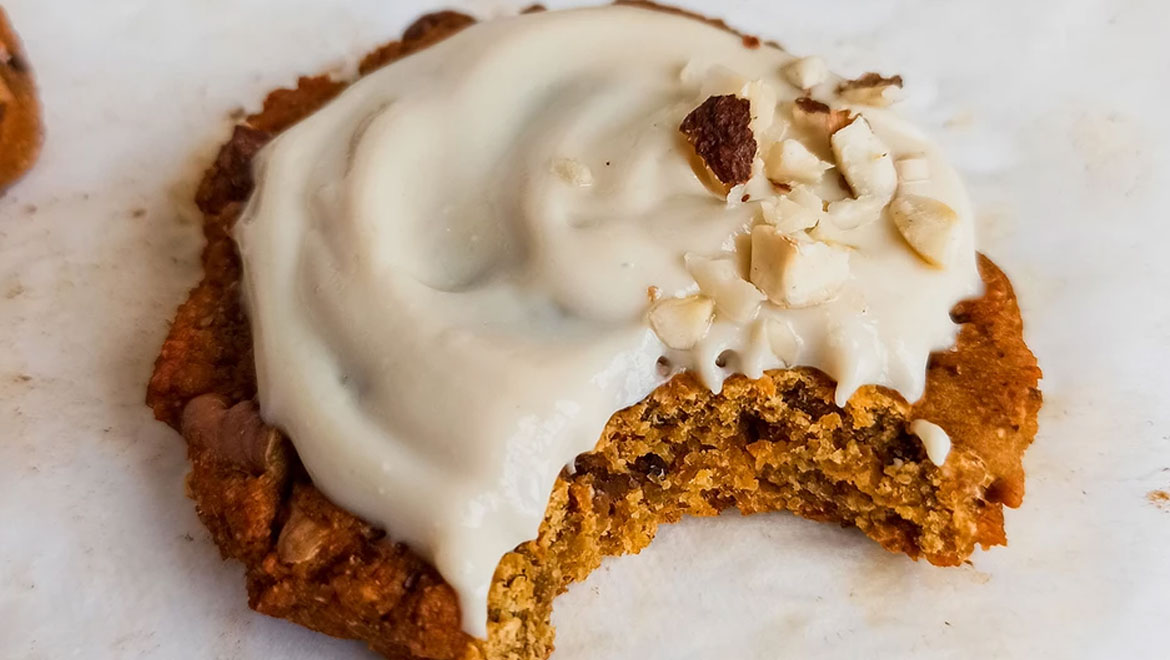 Ρίξτε μέσα τα κομματάκια καρότου και τα καρύδια. Προσπαθήστε να μην ανακατέψετε υπερβολικά.