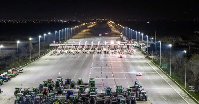 Λίγο μετά τις 6 το απόγευμα της Τετάρτης, μετακίνησαν τα τρακτέρ τους σε τέτοιο σημείο ώστε να αποκλειστεί η εθνική οδός και στα δύο ρεύματα κυκλοφορίας.