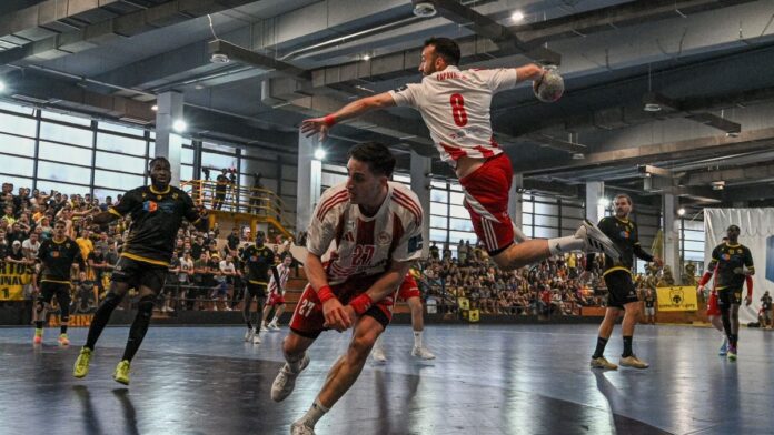 Με το… δεξί μπήκε ο -κάτοχος του τίτλου- Ολυμπιακός στη σειρά των τελικών της Handball Premier. Η ομάδα του Ρικάρντο Τριλίνι επιβλήθηκε 32-27 της ΑΕΚ στην αίθουσα “Γ. Κασιμάτης” του ΟΑΚΑ, στον πρώτο τελικό του πρωταθλήματος, και έκανε το πρώτο βήμα (από τα τρία που απαιτούνται) για την κατάκτηση του τίτλου. Αξίζει να σημειωθεί ότι αυτή ήταν η πρώτη εφετινή ήττα της ΑΕΚ στις εγχώριες διοργανώσεις, καθώς μέχρι σήμερα ο “Δικέφαλος” μετρούσε 28 νίκες σε ισάριθμα παιχνίδια για το πρωτάθλημα και το Κύπελλο.