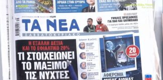 Τα πρωτοσέλιδα των εφημερίδων σήμερα