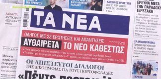 Τα πρωτοσέλιδα των εφημερίδων σήμερα