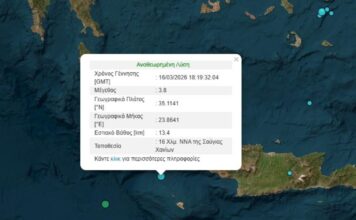 Σεισμός 3,8 Ρίχτερ ανοιχτά της Σούγιας Χανίων