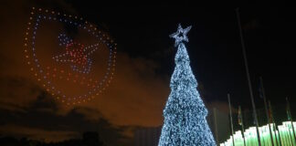 Ο Νίκος Δένδιας στη φωταγώγηση του χριστουγεννιάτικου δέντρου στο στρατόπεδο «Παπάγου»:...