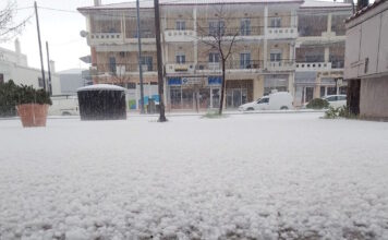 Κακοκαιρία Erminio: Ο Πολύγυρος Χαλκιδικής ντύθηκε στα λευκά από χοντρό χαλάζι
