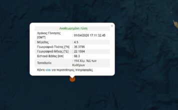 Σεισμός 4,5 Ρίχτερ σε θαλάσσια περιοχή ανοικτά της Κρήτης