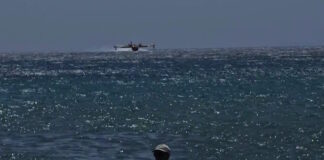 Μπάνιο με τα Canadair στην Ανάβυσσο – Ανεφοδιάζονται μπροστά στους κολυμβητές