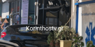 Αυτοκίνητο «μπούκαρε» σε κρεοπωλείο στα Λουτρά Ωραίας Ελένης Κορινθίας (φωτό)