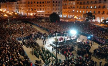 Θεσσαλονίκη: Στην πλατεία Αριστοτέλους συναντήθηκαν και φέτος οι 5 επιτάφιοι της πόλης – Κοσμοπλημμύρα και βαθιά κατάνυξη