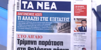 Τα πρωτοσέλιδα των εφημερίδων σήμερα