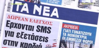 Τα πρωτοσέλιδα των εφημερίδων σήμερα