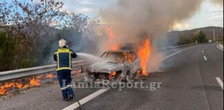 Αυτοκίνητο λαμπάδιασε στην εθνική οδό Λαμίας – Θεσσαλονίκης και έγινε έκρηξη