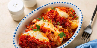 Ψάρι πλακί με πλούσια σάλτσα ντομάτας