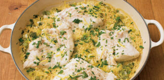 Φιλέτο ψαριού με σπανάκι και κριθαράκι