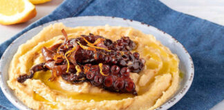 Φάβα από κόκκινες φακές με ψητό χταπόδι