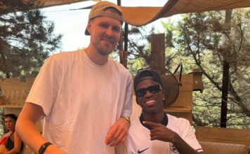 Ο Βινίσιους ποζάρει με τον Πορζίνγκις φορώντας μπλούζα Μπέλιγχαμ