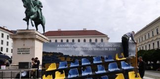 Κομμάτι κερκίδας από ένα κατεστραμμένο στάδιο του Χάρκοβο εκτίθεται στο Μόναχο