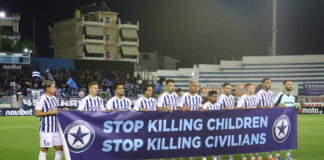 Ατρόμητος – Άρης: Πανό για την Παλαιστίνη από τους Περιστεριώτες