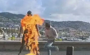 Άνδρας έβαλε φωτιά στο άγαλμα του Κριστιάνο Ρονάλντο έξω από το...