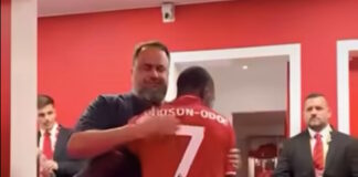 Ο Βαγγέλης Μαρινάκης αγκάλιασε του παίκτες της Νότιγχαμ Φόρεστ μετά τη...