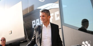 Ο Γιώργος Βαγιαννίδης στην αποστολή της Σπόρτινγκ για την πρεμιέρα του...