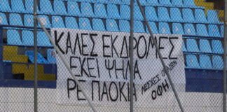 Οι οπαδοί του ΟΦΗ σήκωσαν πανό στο Περιστέρι για τους αδικοχαμένους...