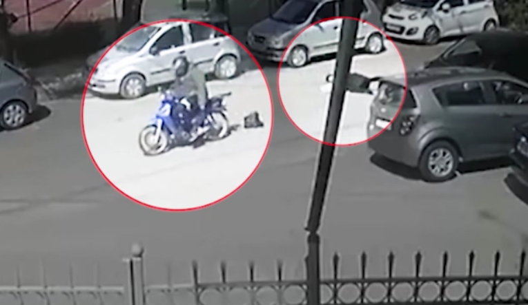 Εικόνες που κόβουν την ανάσα στο Χαϊδάρι. Μία 60χρονη γυναίκα δέχεται πισώπλατη επίθεση από έναν μοτοσικλετιστή, ο οποίος επιχειρεί να της αρπάξει την τσάντα.