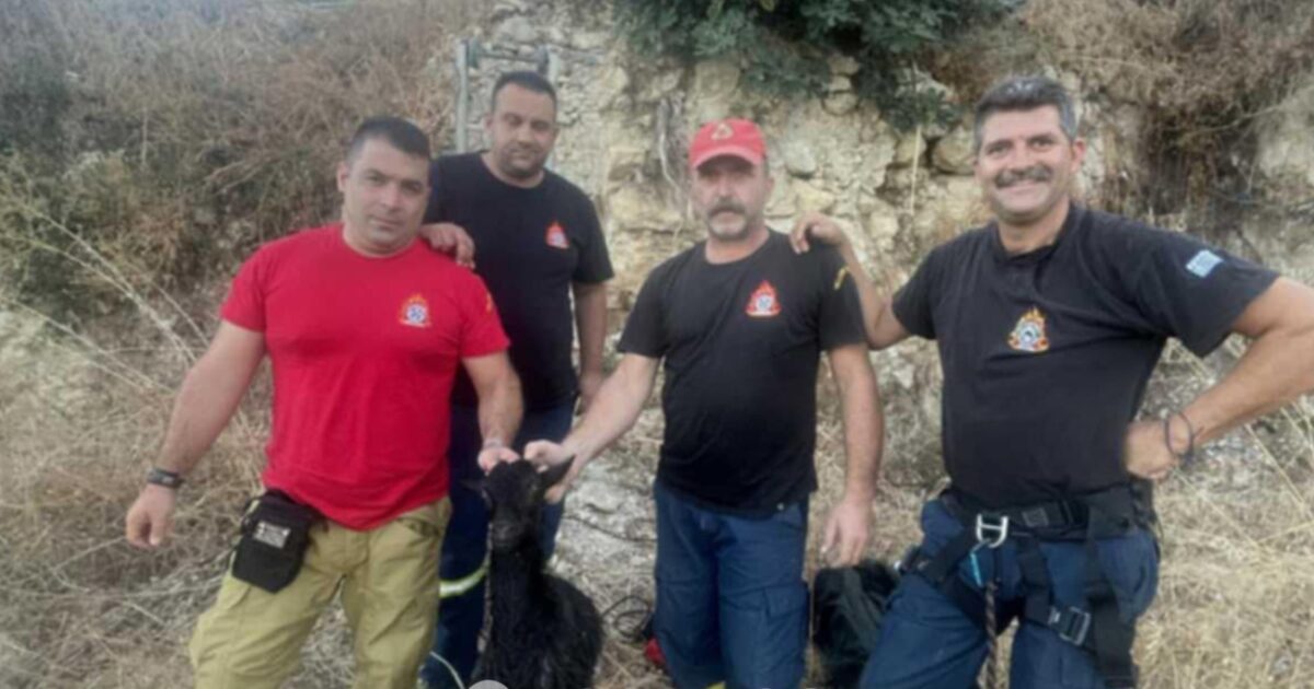 Οι πυροσβέστες που έσωσαν το κατσικάκι / Photo / flashnews.gr