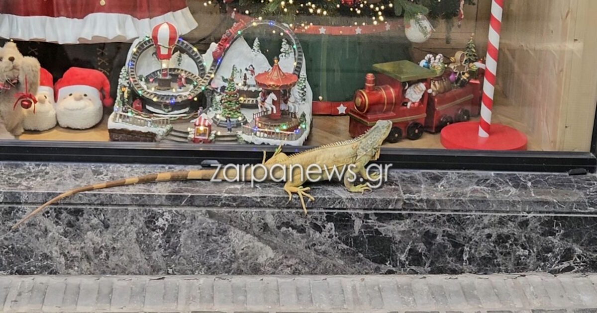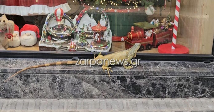Δεν πίστευαν στα μάτια τους οι πολίτες που περνούσαν από το κέντρο των Χανίων αντικρίζοντας ένα μεγάλο ιγκουάνα να περπατά μπροστά από τα καταστήματα.