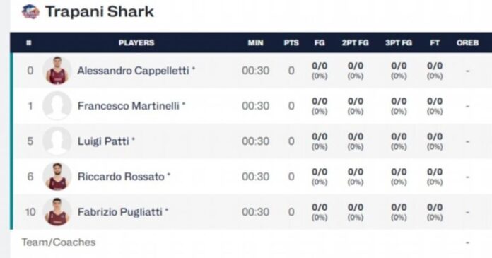 Hapoel Holon-Trapani Sharks finisce prima del termine del primo quarto. I siciliani erano rimasti con un solo giocatore. Hanno lasciato il campo Rossato, Cappelletti e Pugliatti. Poi il quinto fallo di Patti. 38-5 dice il tabellone pic.twitter.com/kmCUi7jBst