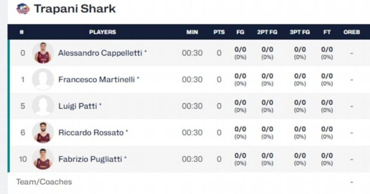Συγκεκριμένα, τρία λεπτά πριν το φινάλε της πρώτης περιόδου και με τη Χάποελ Χολόν να προηγείται με σκορ 38-5, η Τραπάνι έμεινε με μόλις έναν παίκτη ενεργό (!), με αποτέλεσμα οι διαιτητές να σφυρίξουν τη λήξη της αναμέτρησης.