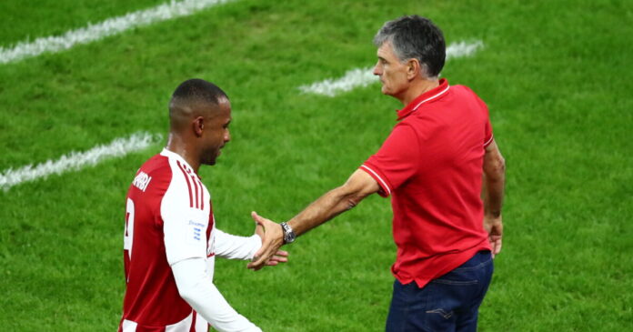 Για το αν μίλησε στο τηλέφωνο με τον Ελ Κααμπί κι αν του ευχηθεί καλή επιτυχία: “Aν μιλούσα με τον Ελ Κααμπί στο τηλέφωνο ειλικρινά θα του ευχόμουν καλή επιτυχία, γιατί είναι πάρα πολύ σημαντικό όταν έρθει να είναι χαρούμενος και με ανεβασμένο το ηθικό. Σίγουρα αν έχανε το σημερινό παιχνίδι και έπρεπε να αποχωρήσει για να γυρίσει, θα ήταν πιο σύντομα κοντά μας, αλλά θα έρχονταν στεναχωρημένος, θα έρχονταν με πεσμένο το ηθικό του, ενώ το ιδανικό θα είναι να φτάσει μέχρι τον τελικό, γιατί είναι στη χώρα του, σε μια πολύ σημαντική διοργάνωση, που θα λέγαμε πως έχει την υποχρέωση να την κερδίσει, επομένως θέλουμε να φτάσει μέχρι το τελικό”.