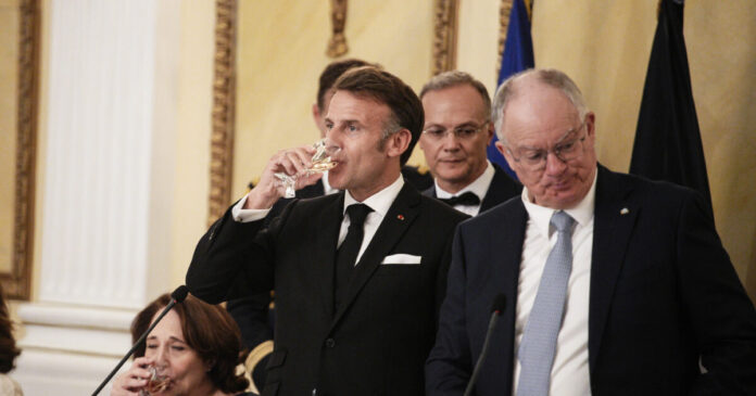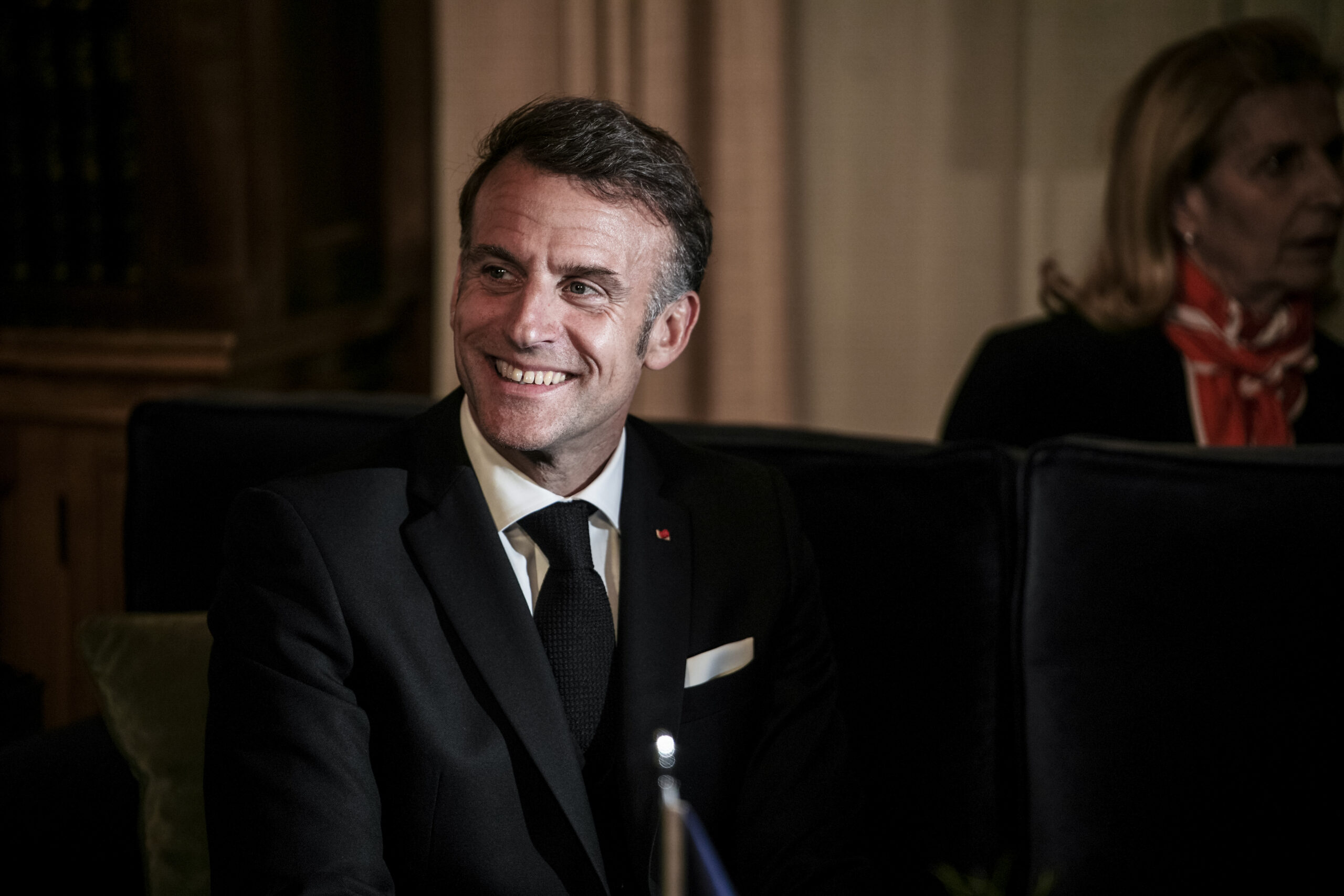 - Ο Εμανουέλ Μακρόν χαμογελαστός στο περιθώριο του δείπνου